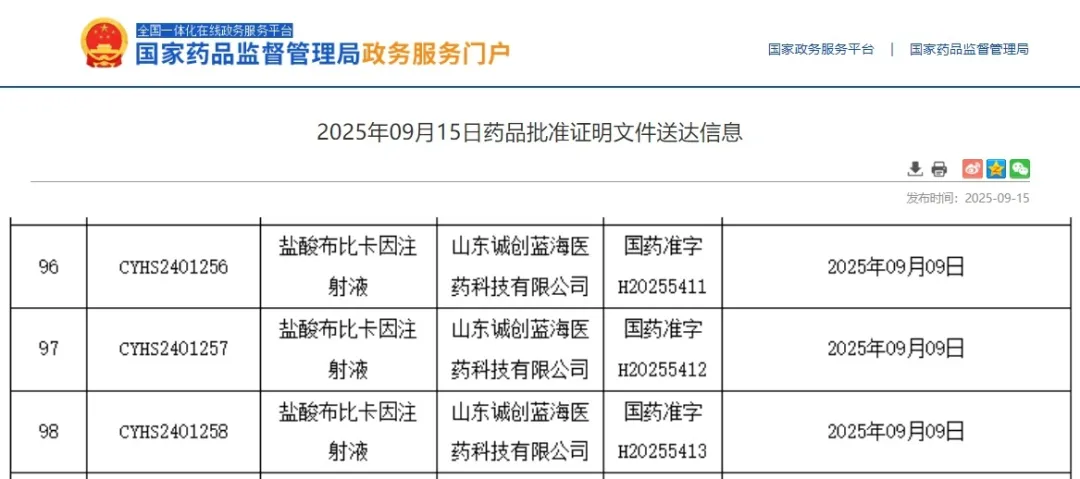 局部麻醉药 | 恭喜合作伙伴山东诚创蓝海盐酸布比卡因注射液获批上市