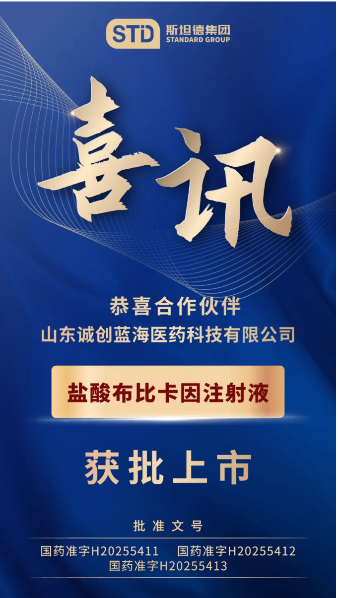 近期,恒星集团生物医药成功助力山东诚创蓝海医药科技有限公司(以下简称“山东诚创蓝海”)申报的盐酸布比卡因注射液获批上市。