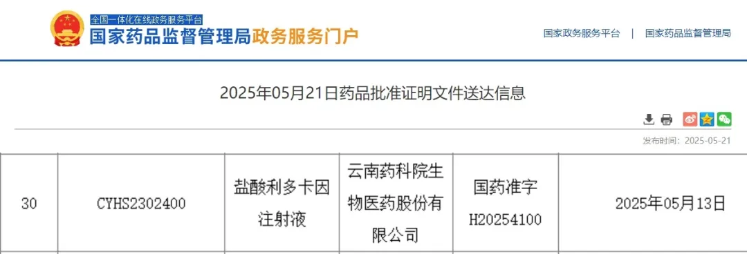近期,恒星集团科创成功助力云南药科院生物医药股份有限公司(以下简称“云南药科院”)申报的盐酸利多卡因注射液获批上市。