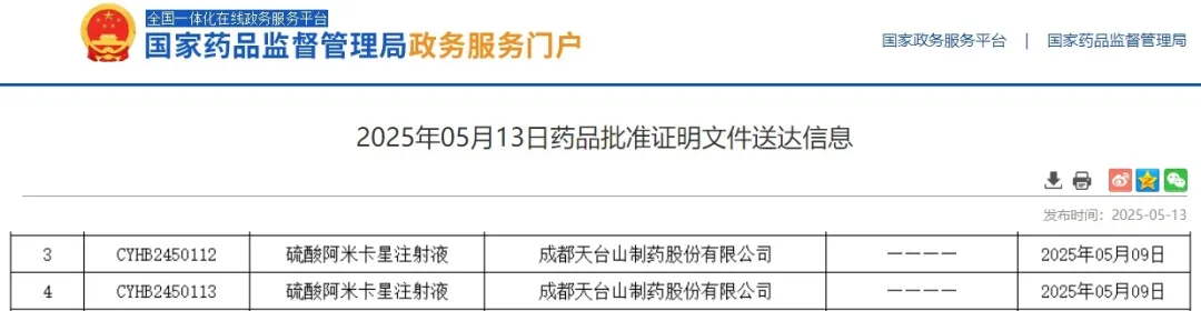 近期,恒星集团科创医药科技(青岛)有限公司(简称“恒星集团科创”)成功助力成都天台山制药股份有限公司(以下简称“天台山制药”)申报的硫酸阿米卡星注射液获批上市。